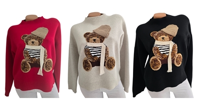 Dieser charmante Damen-Pullover ist ein echter Hingucker! Die kurze Form und die langen Ärmel verleihen ihm einen modernen, trendigen Look, während der runde Ausschnitt für angenehmen Tragekomfort sorgt. Auf der Vorderseite begeistert ein liebevoll gestalteter Teddy Bär mit gestrickter Mütze und Schal – ein verspieltes Detail, das dem Pullover eine gemütliche und winterliche Note verleiht.