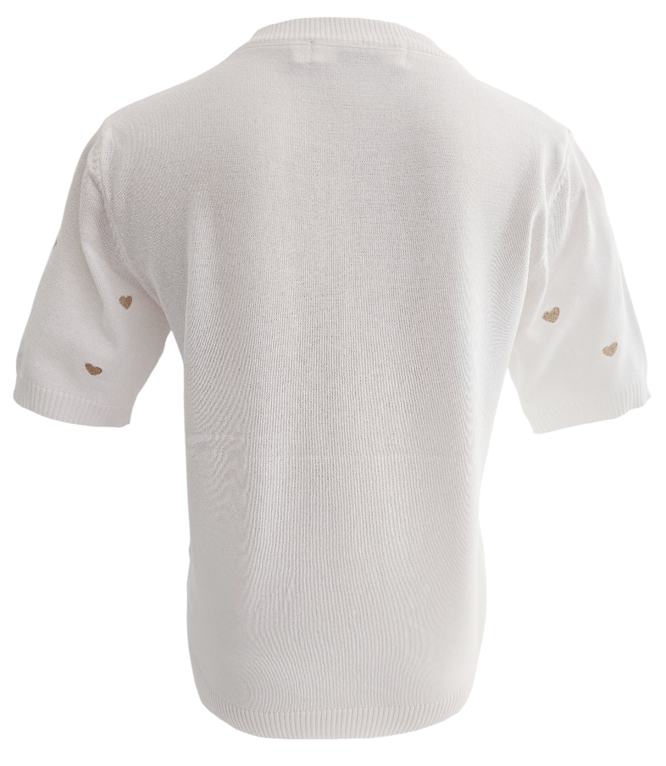 Damen Feinstrick-Pullover weiß mit goldenen Herzen