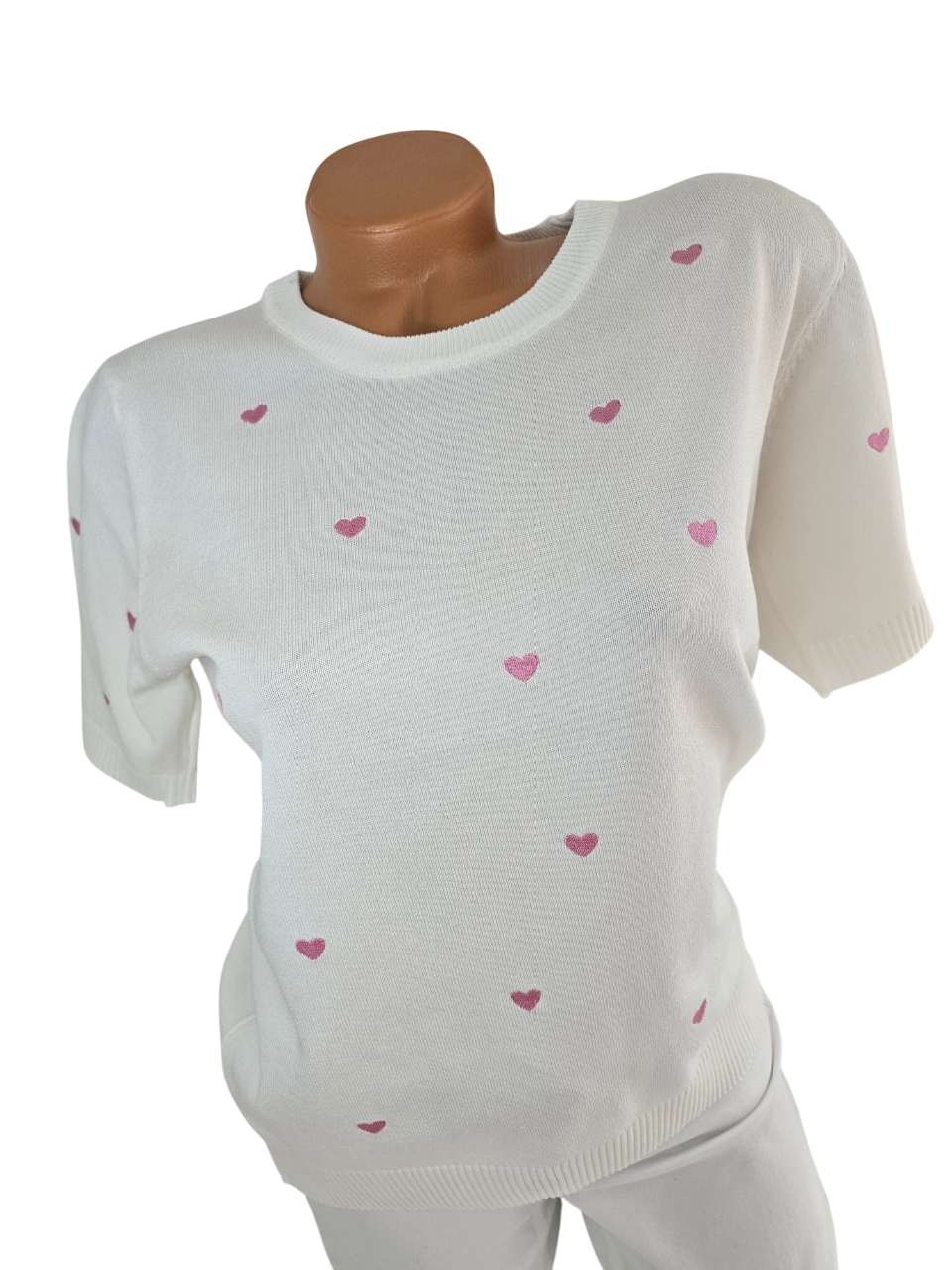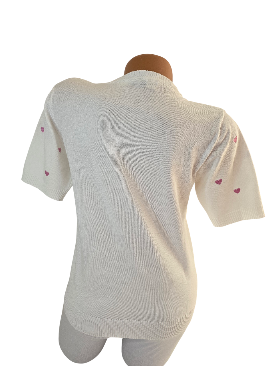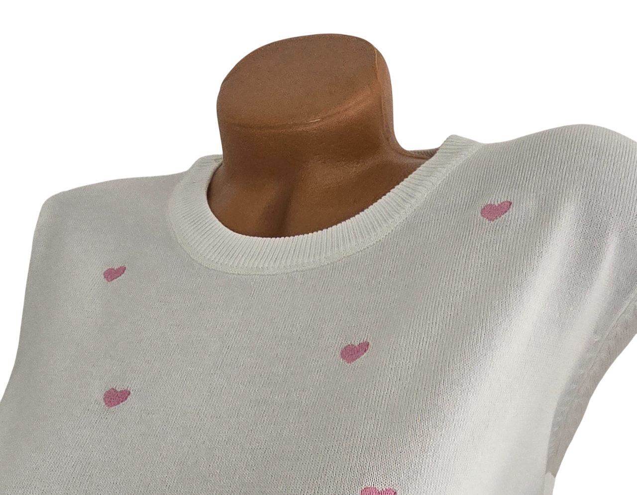 Damen Feinstrick-Pullover weiß mit rosa Herzen