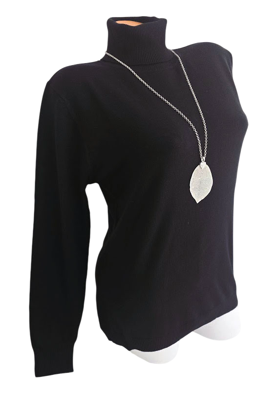 Damen Rollkragen Fein Strick Pullover Oberteil schwarz