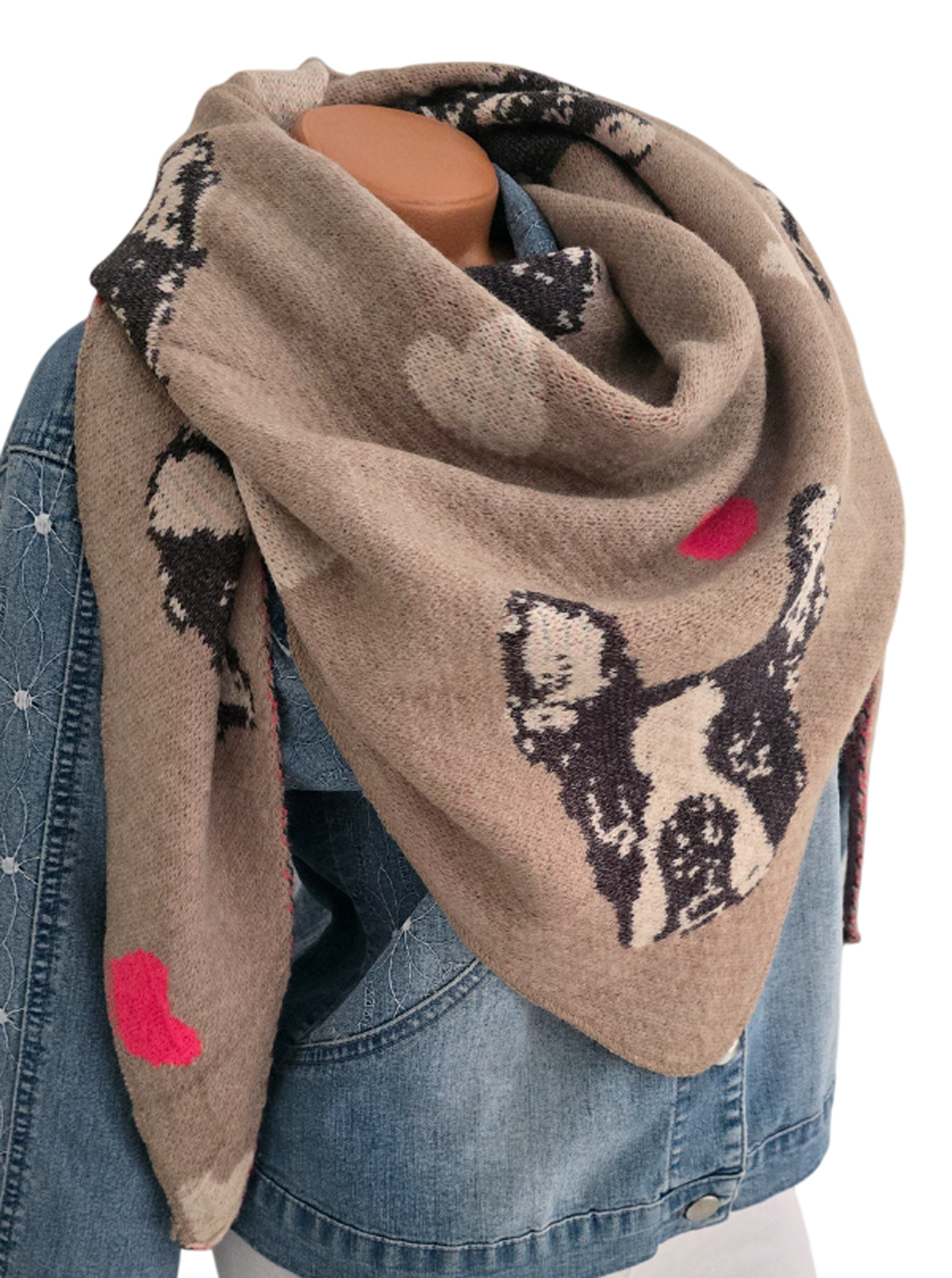 Damen Schal Wendeschal Dreick Tuch Winter Herz kuschelweich warm Frenchi