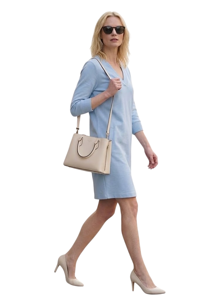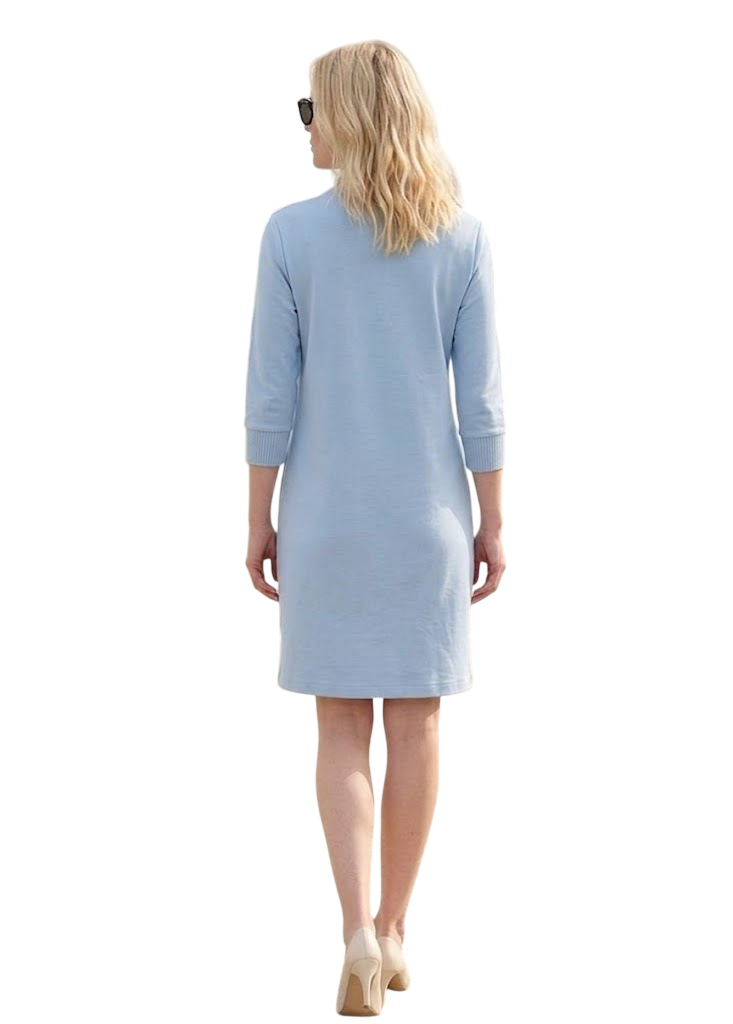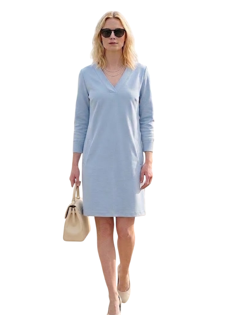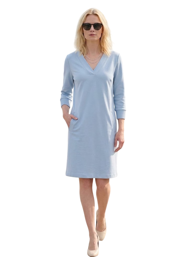 Verliebe dich in ein Kleid, das feminines Design und höchsten Tragekomfort perfekt vereint. In einem sanften hellblauton gehalten, strahlt dieses Modell zeitlose Eleganz aus und wird durch raffinierte Details zum echten Blickfang in deiner Garderobe.