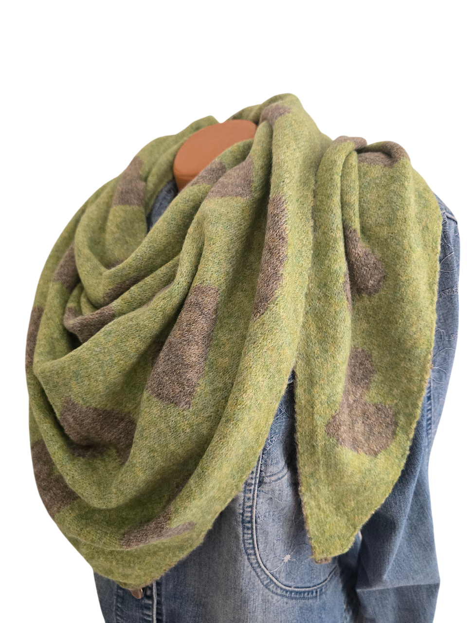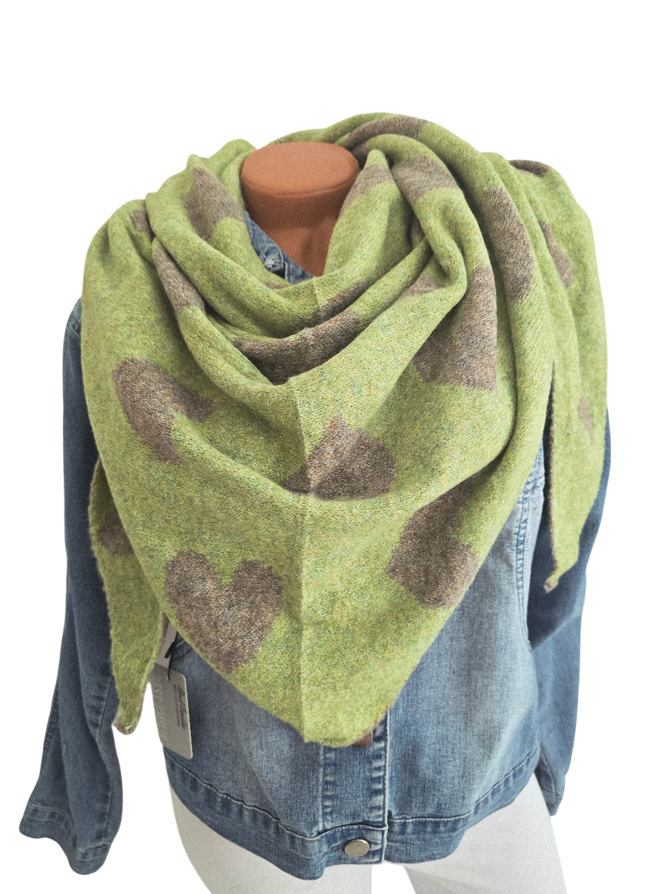 Wendeschal Winterschal Dreiecktuch Herz grün grau kuschelweich warm